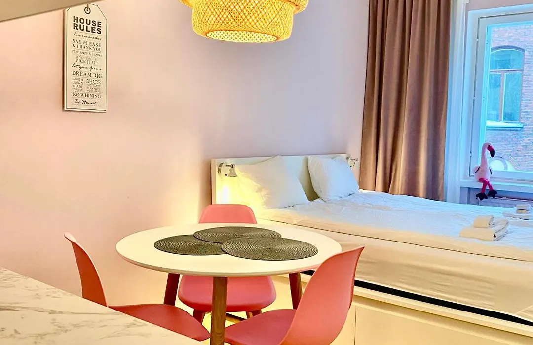 Ferielejlighed har et fuldt udstyret køkken til selvforplejning. Kamppi metrostation ligger på 15 minutters afstand.